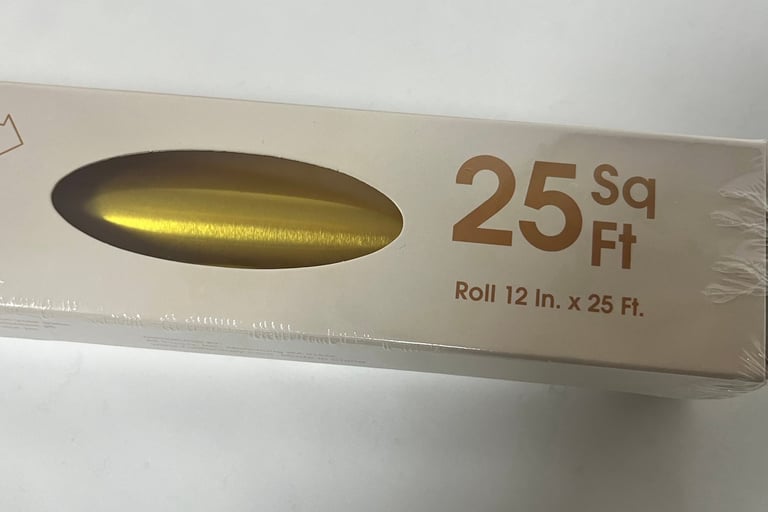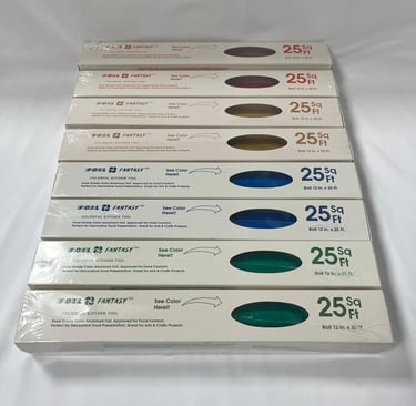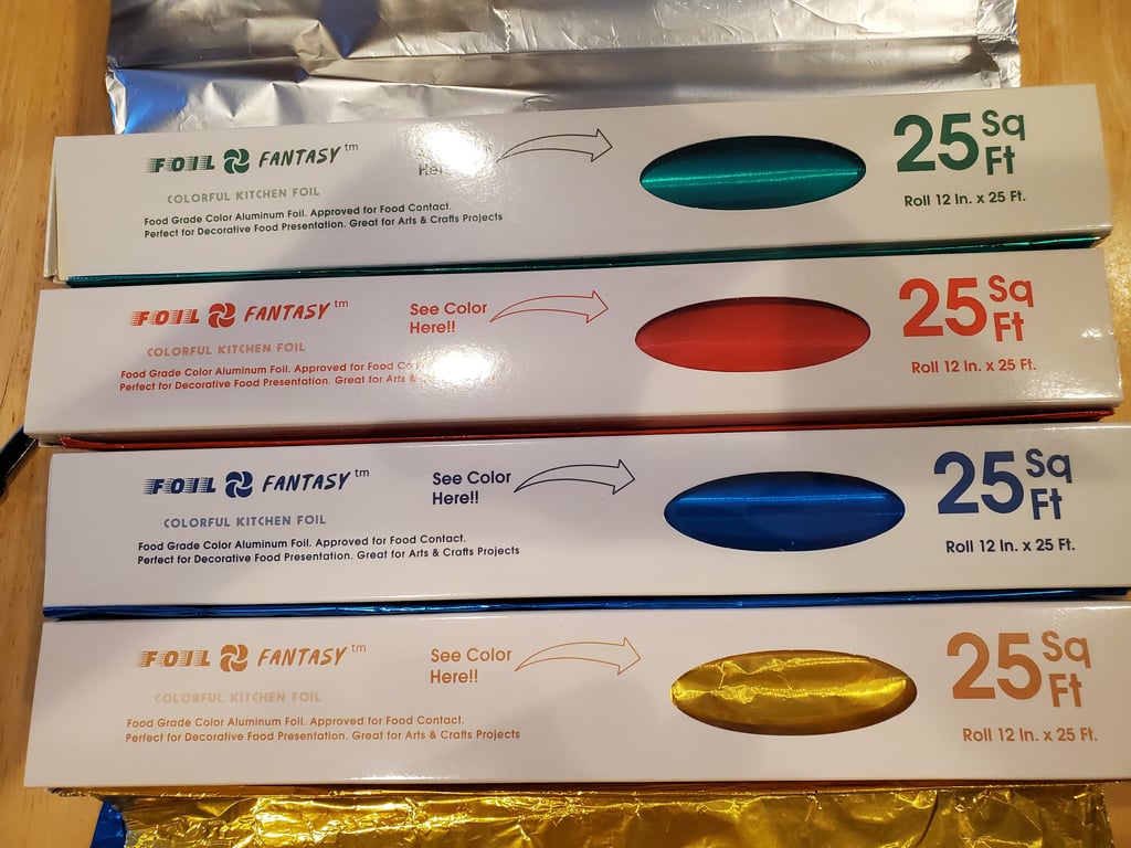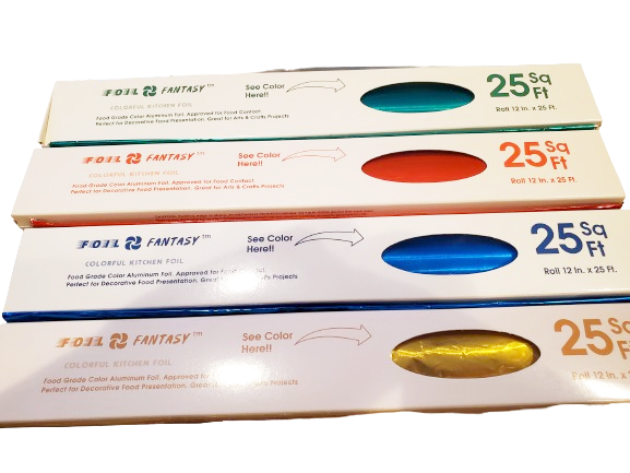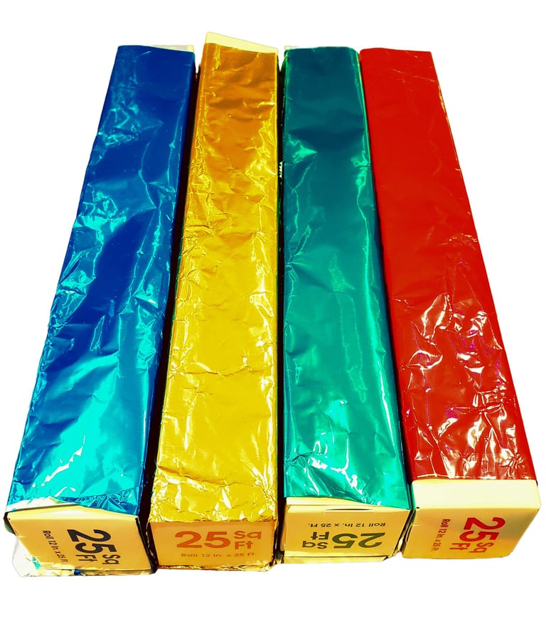 Wrap food and crafts beautifully in red, blue, green, or gold aluminum foil by Foil Fantasy!