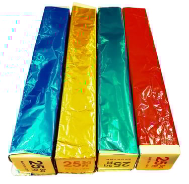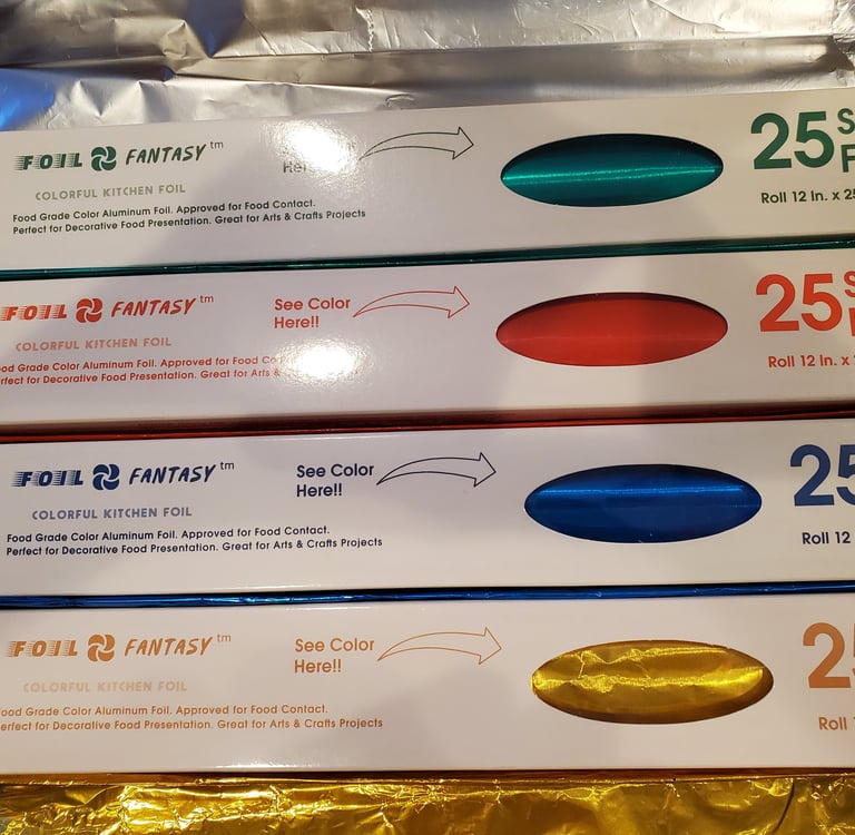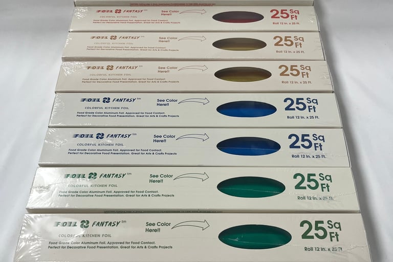 Foil Fantasy brings vibrant colored aluminum foil rolls for kitchens and crafts. Available in Blue, Green, Red & Gold Colors!